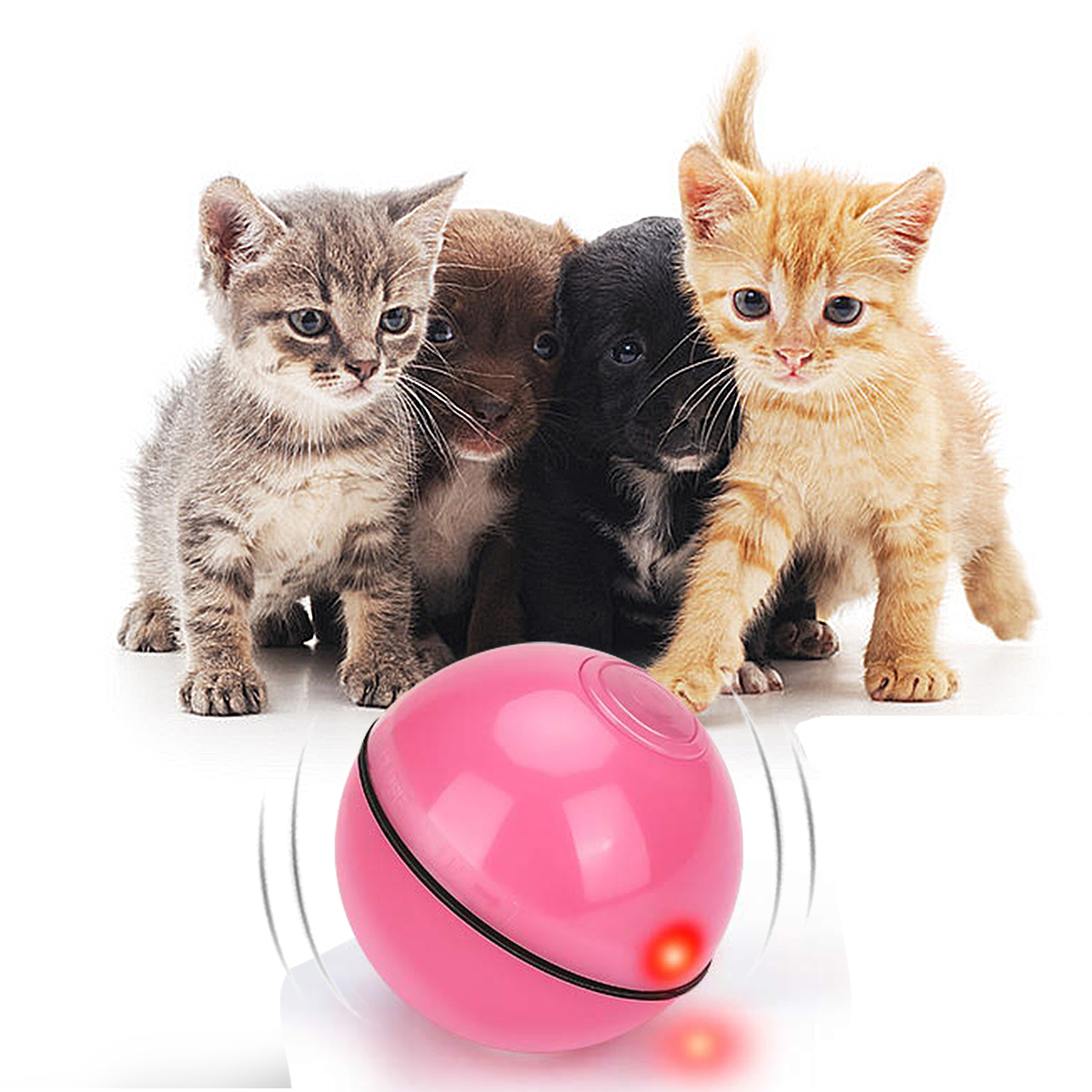 Kingtree Smart Interactive Cat Toy Ball, USB Rechargeable Automatic Rolling Ball with Built-in LED Light for Indoor Cats, 360 Degree Self Rotating Cha