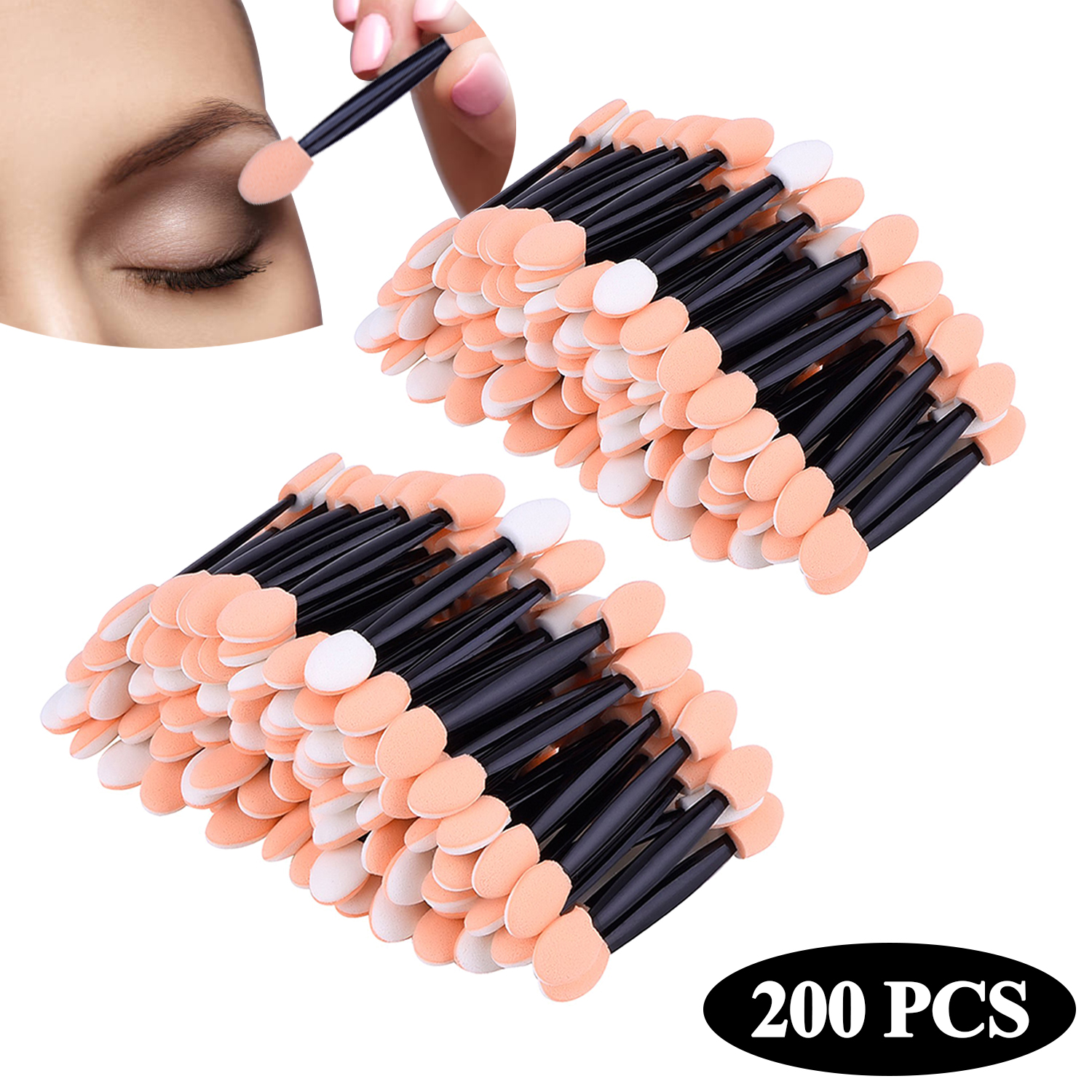 Kingtree 200PCS Disposable Eyeshadow Brush Dual Sides Sponge Tipped Oval Eyeshadow Applicators Eye Shadow Makeup Brushes - Black