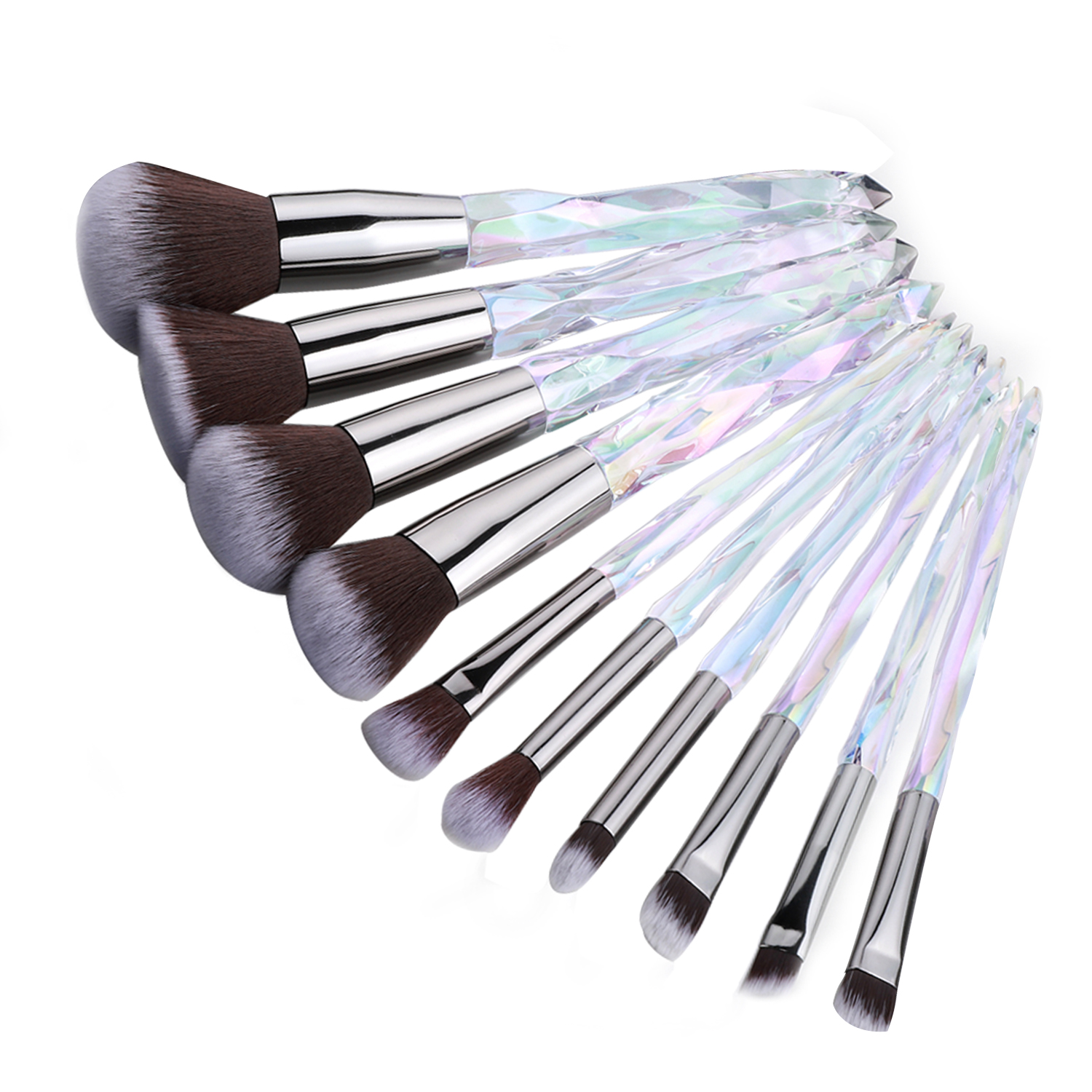 Kingtree Makeup Brush Set 10PCS Crystal Transparent Handle Kabuki Powder Foundation Brush Concealer Eye Shadow Eyeliner Eyebrow Brush for Girls Ideal