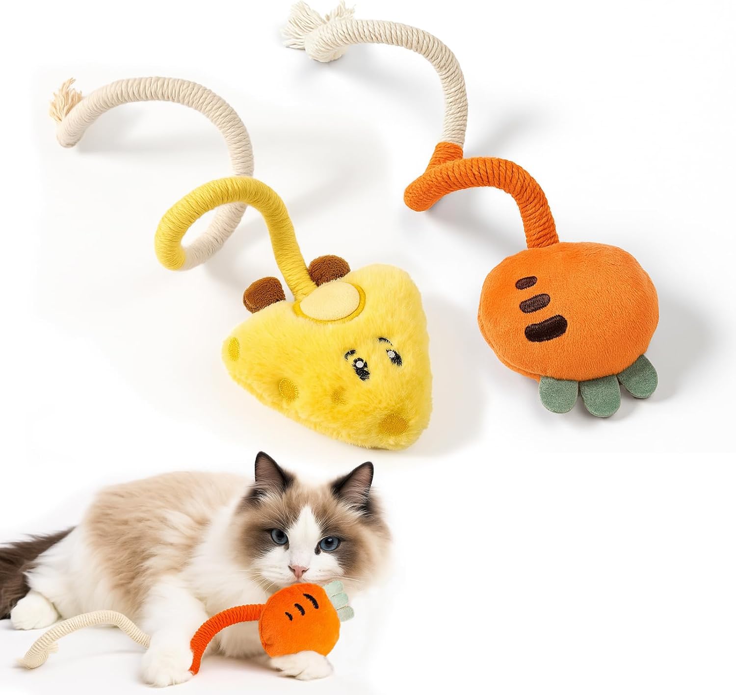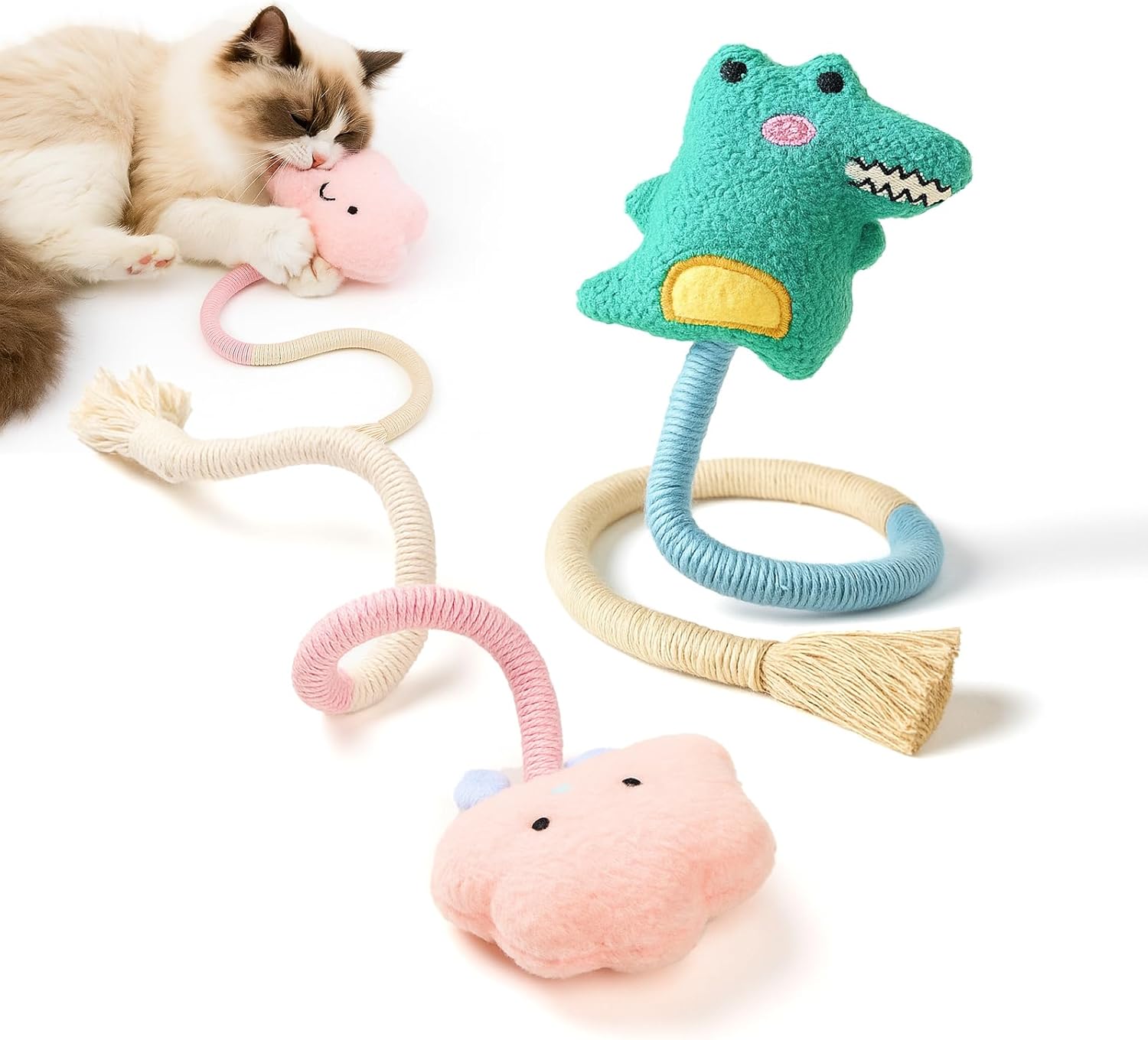 Kingtree Cat Toy Chew Ropes, 2 Pack Cotton Rope Cat Chew Toys Interactive Catnip Rope Toys for Indoor Cats Teeth Cleaning, Bite Resistant Chew Ropes W